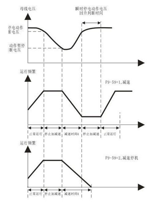 6.1此功能只在停電瞬間變頻器不會(huì)故障停機(jī),而是降低輸出頻率,通過負(fù)載回饋能量,補(bǔ)充電壓降低,以維持變頻器短時(shí)間內(nèi)繼續(xù)工作。